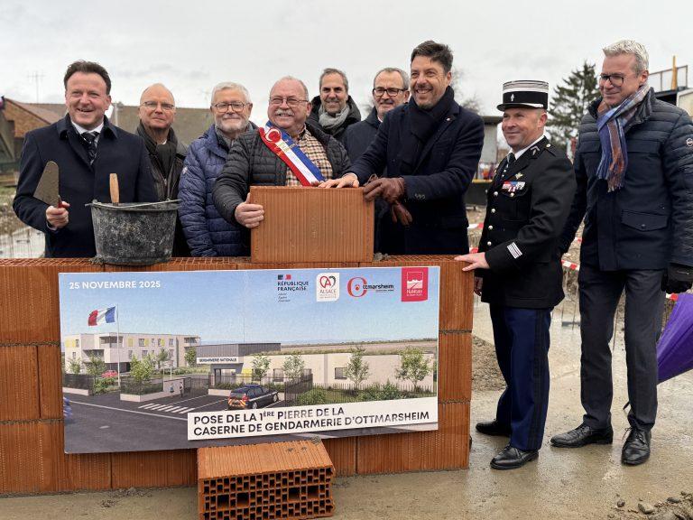 Habitats de Haute-Alsace a posé, le 25 novembre, la première pierre de la future Caserne de la Gendarmerie nationale à Ottmarsheim.