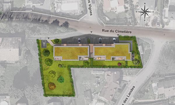 Située rue du Cimetière à Hésingue, à proximité du centre-ville, la future résidence sera composée de 9 logements (5 F3 et 4 F4) répartis sur 2 résidences en R+2. Celle-ci présente un parti architectural épuré (touches modernes avec des bardages en bois) garantissant l’intégration urbaine de la résidence dans le quartier, sans distinction entre logement aidé et promotion privée.