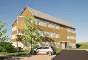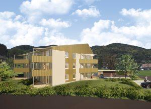 Conçue avec le cabinet d’architecture Atelier D Form de Soultzbach-les-Bains, la future résidence présente un parti architectural harmonieux et de bonne facture (construction mixte béton et bois avec des choix techniques permettant d’obtenir la certification NF Habitat Haute Qualité Environnementale), et se veut sobre et performante du point de vue énergétique (DPE B) grâce au recours aux énergies