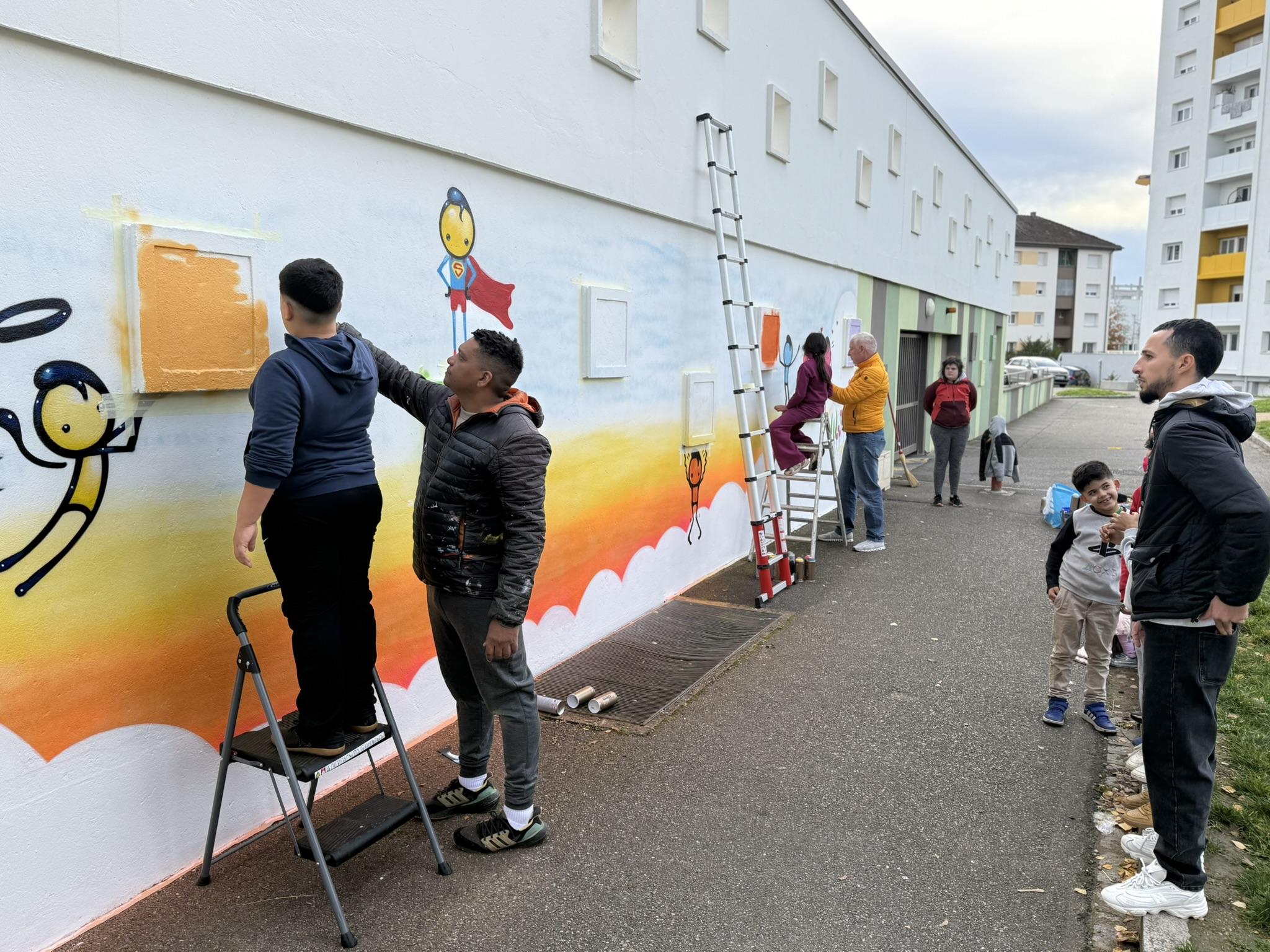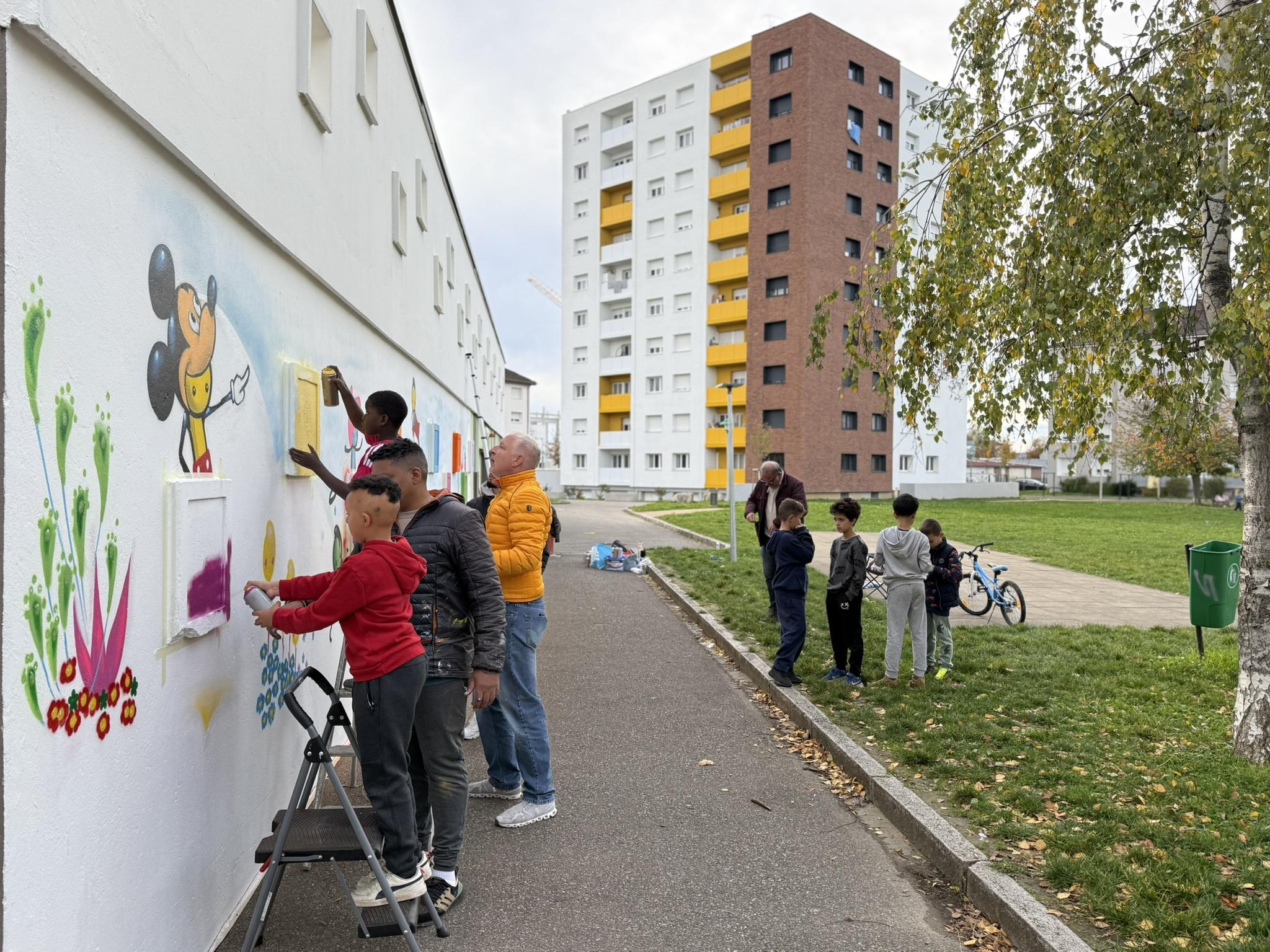 Une fresque réalisée par les jeunes du quartier Tivoli à Huningue !