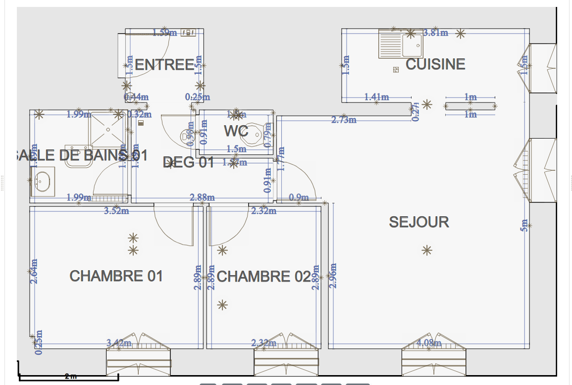 Salle de bain (3,76m²), W.C. 1 (1,37m²), Entrée (2,39m²), Cave (1,44m²), Dégagement 1 (4,04m²)