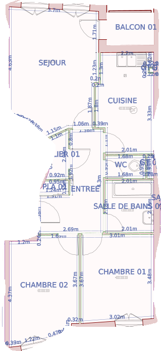 Salle de bain (4.88m²), W.C. 1 (1.06m²), Entrée (7.78m²), Loggia (4.33m²), Séchoir extérieur (2.67m²), Cave (2m²)