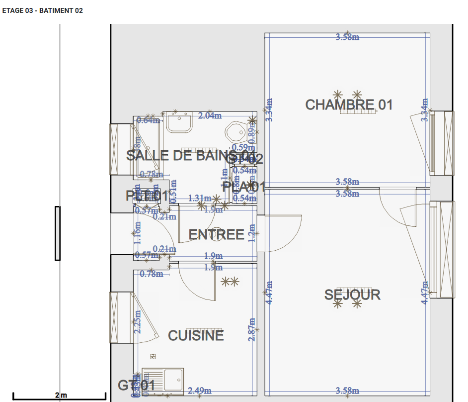 Salle de bain (4,22m²), Entrée (2,28m²), Cave (4m²), Placard technique 1 (0,19m²)