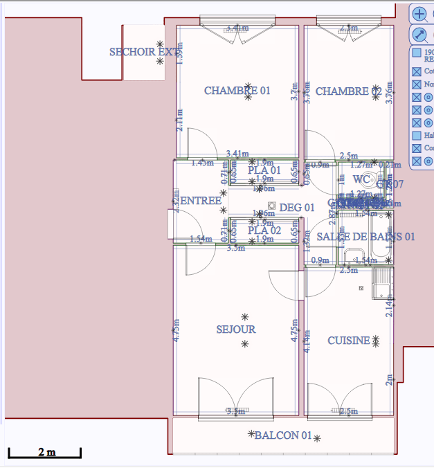 Salle de bain (2,36m²), W.C. 1 (1,27m²), Entrée (3,57m²), Balcon 1 (6,15m²), Séchoir extérieur (1,71m²), Cave, Dégagement 1 (4,48m²)
