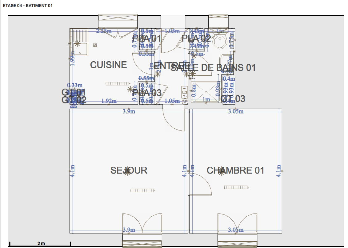 Salle de bain (2,8m²), Salle de bain (3,38m²), Entrée (2,63m²), Cave (4,37m²)