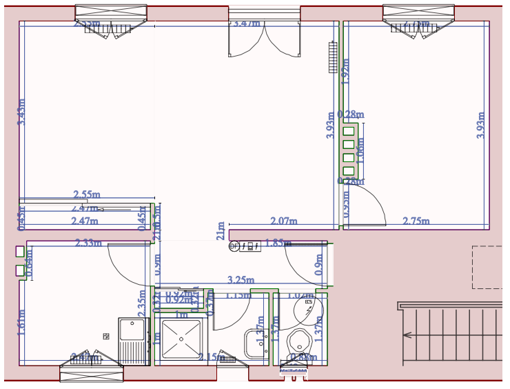 Salle de bain (2.58m²), W.C. 1 (1.4m²), Entrée (2.93m²), Cave (2m²)