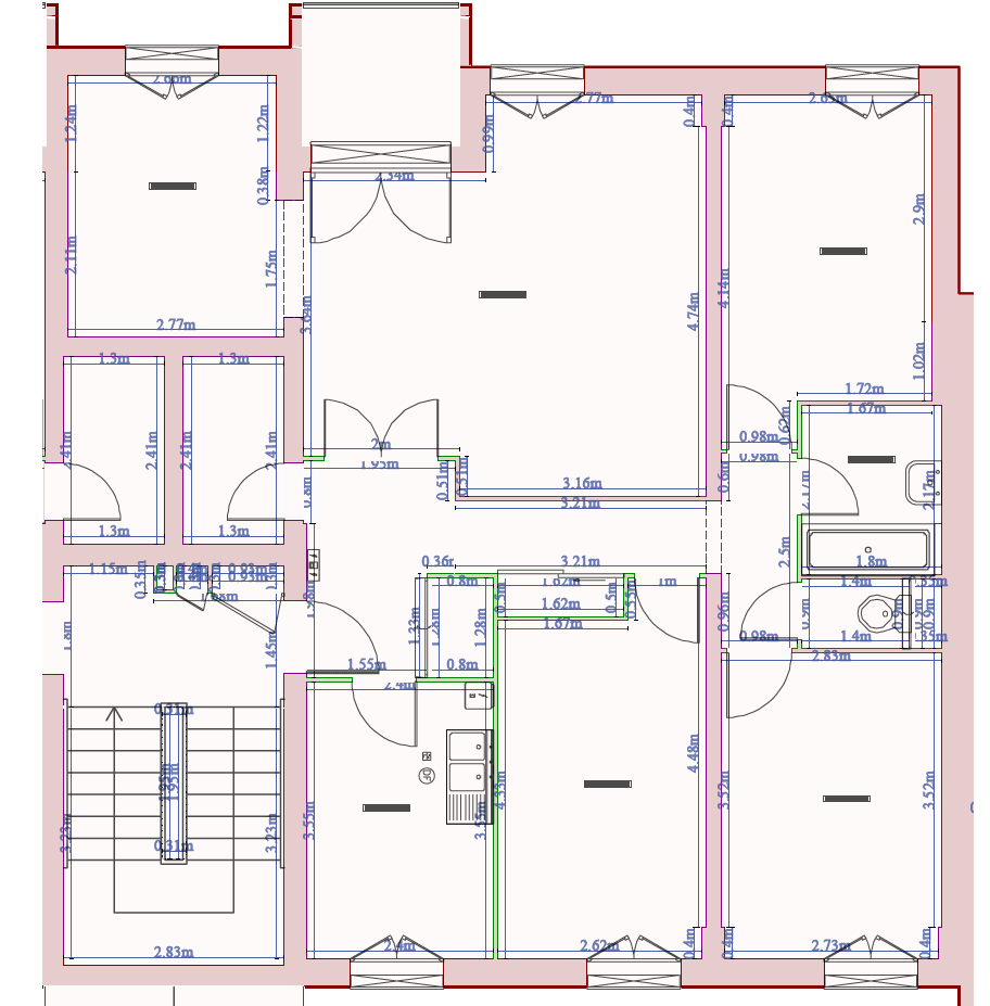 Salle de bain (3,91m²), W.C. 1 (1,26m²), Entrée (4,86m²), Balcon 1 (3,58m²), Couloir 1 (5,65m²), Dégagement 1 (5,65m²)